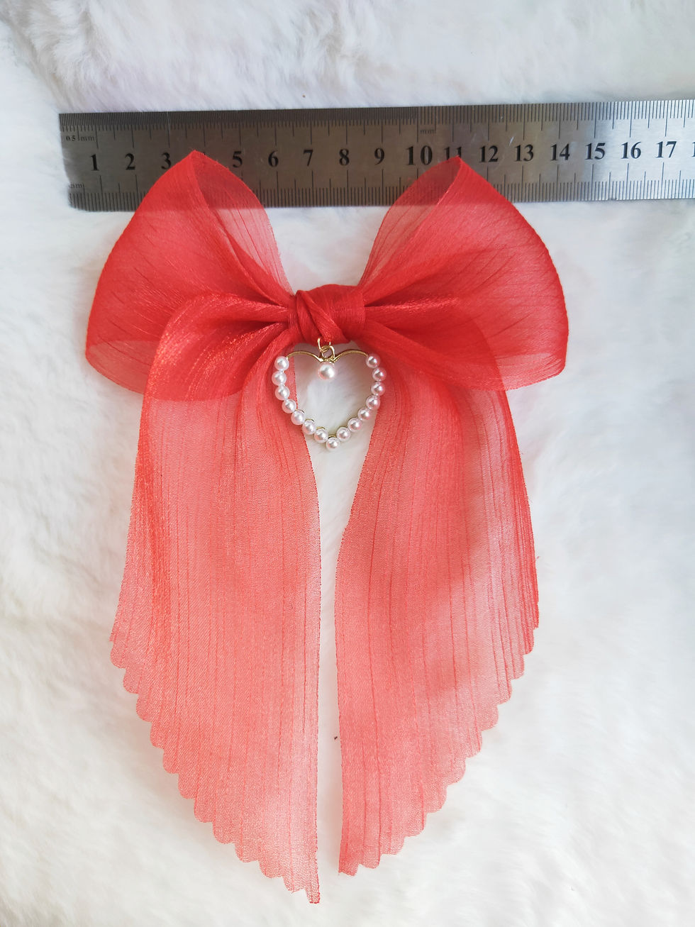 Organza Bow with Heart Decoration丨Wavy Edge丨Ribbon Hair Accessory丨red